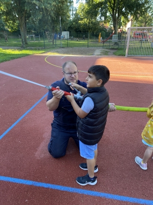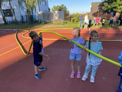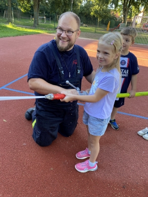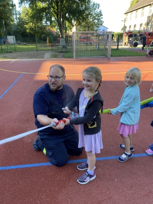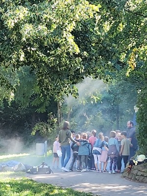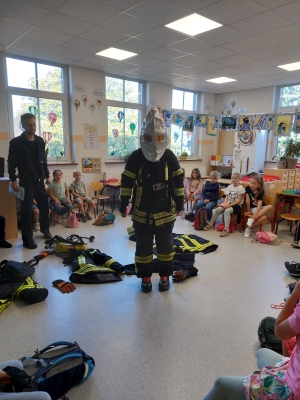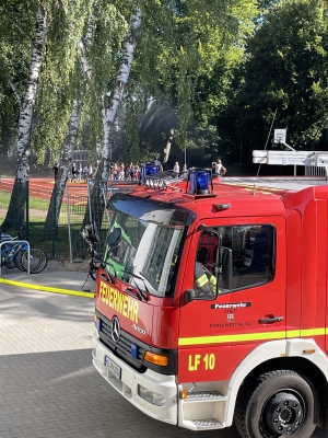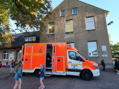 Im September fanden die Brandschutz-Tage statt. Dank großer Unterstützung der ortsansässigen Rettungskräfte konnte auf dem Schulhof ein Feuerwehrauto und ein RTW stehen, gelöscht werden, die Schutzkleidung ausprobiert, experimentiert und die Rauchentwicklung in einem Haus sichtbar gemacht werden.
