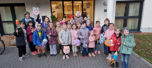 Nachmittags, am 10.11.2025, erfreuten einige Kinder die Bewohnerinnen und Bewohner des Hauses Anima mit ihren Liedern. Neben Klassikern wie "Ich geh mit meiner Laterne" und "Sankt Martin" zeigten sich die Kinder auch bei "Lichterkinder" textsicher. Die selbst gebastelten Laternen erleuchteten farbenfroh die Cafeteria. Hoffen wir, dass wir - so wie Sankt Martin - auch ein bisschen Freude schenken konnten.